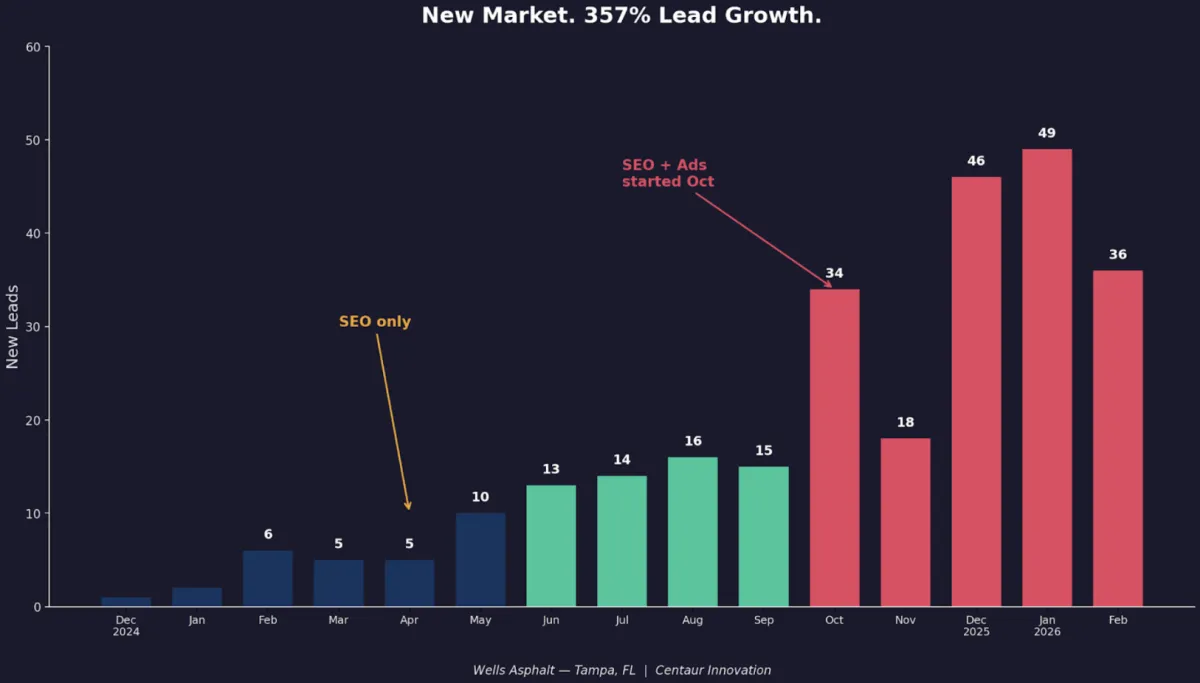 Wells Asphalt had a strong reputation in Wisconsin — but Florida was a completely different story. No brand recognition. No web presence. No local connections. Starting from scratch in Tampa.